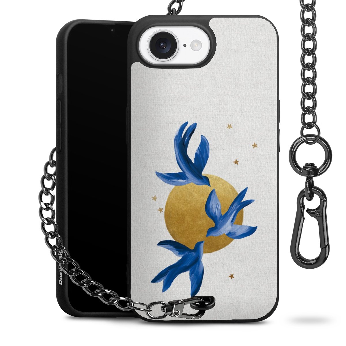 • Mattschwarze Handyhülle mit Metallkette