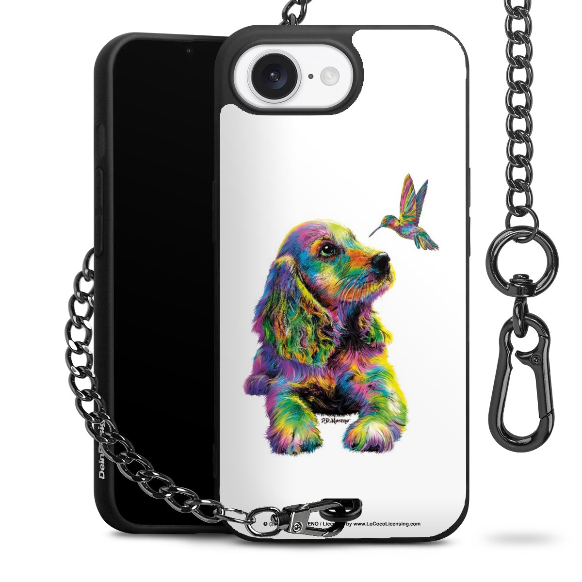 Die Handyhülle verfügt über eine mittig am unteren Rand platzierte Öse, an der die Metallkette stabil befestigt ist. Bestelle die Hülle einfach für Dein Smartphone-Modell, dann passt sie wie angegossen und Du brauchst sie bloß einmal anzudrücken. Handy in die Tasche, Karabiner an den Hosenbund – schon kann die Party starten.