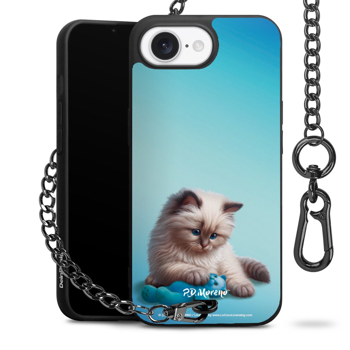 Die mattschwarze Silikon-Handyhülle besteht aus robustem TPU (thermoplastisches Polyurethan). Sie ist flexibel und schützt Dein Smartphone vor Stößen und Kratzern. Die Kette sowie der Karabinerhaken sind aus Metall in Gunmetal-Optik gefertigt. Für dieses Produkt kommen ausschließlich TÜV-geprüfte Materialien zum Einsatz.