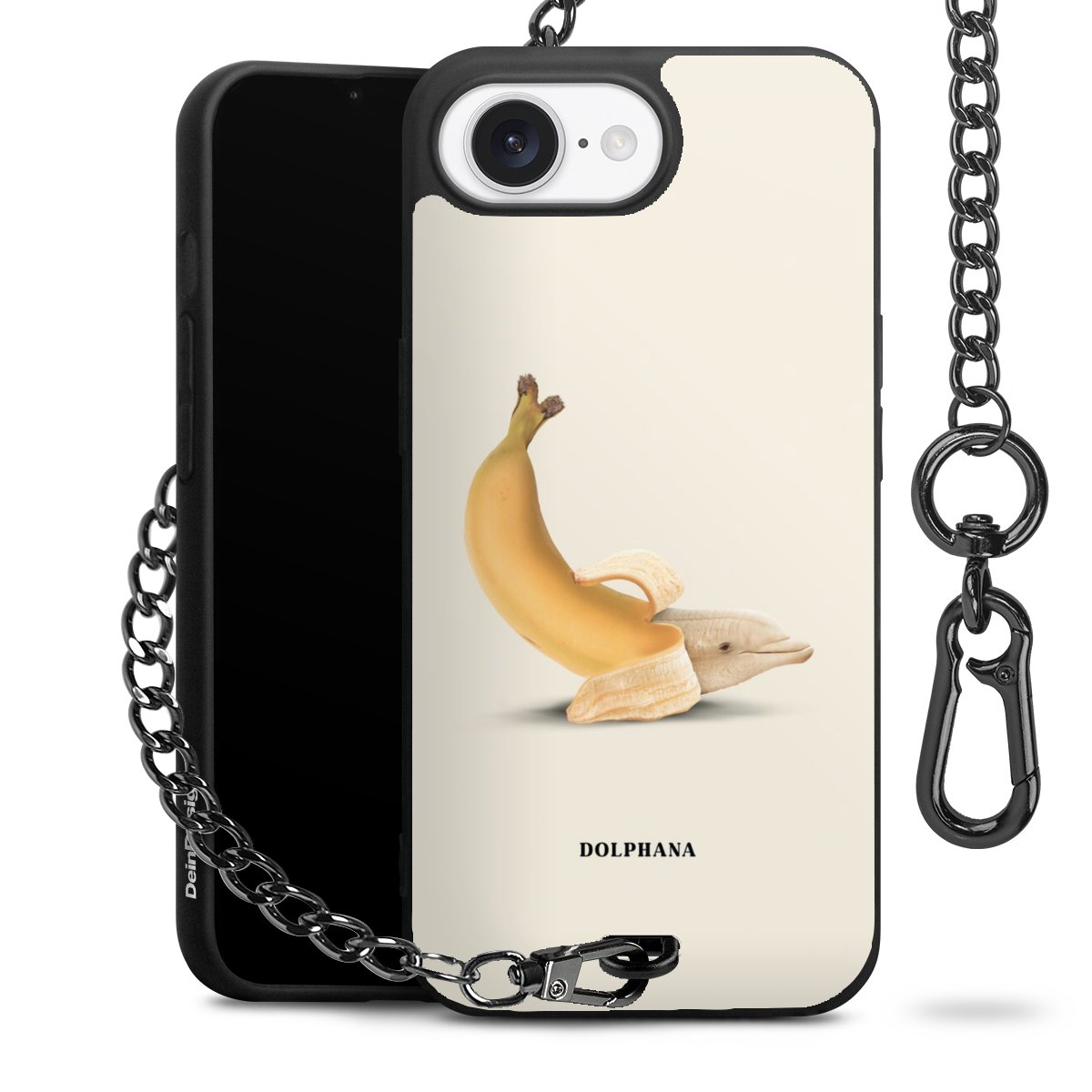 • Mattschwarze Handyhülle mit Metallkette