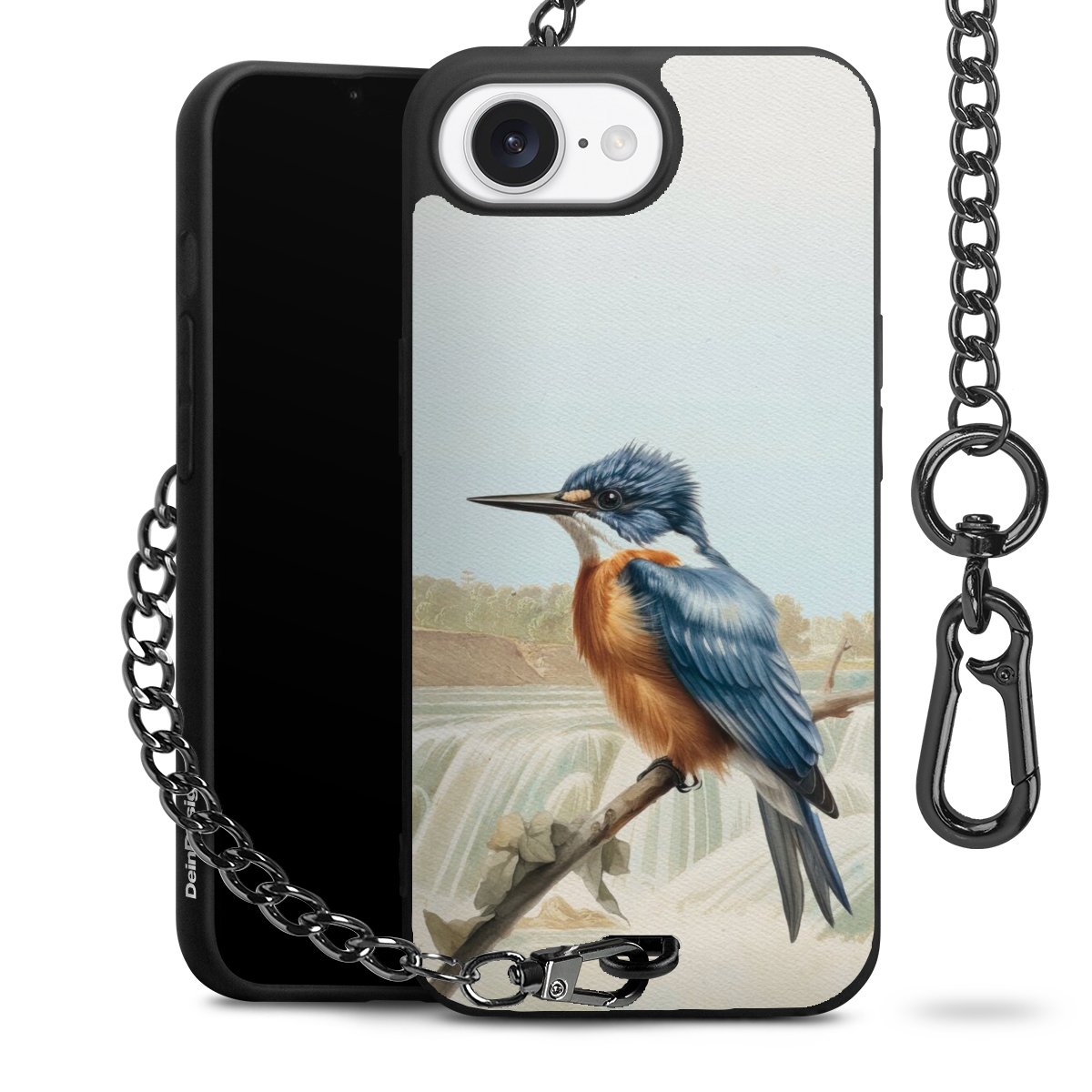 • Mattschwarze Handyhülle mit Metallkette