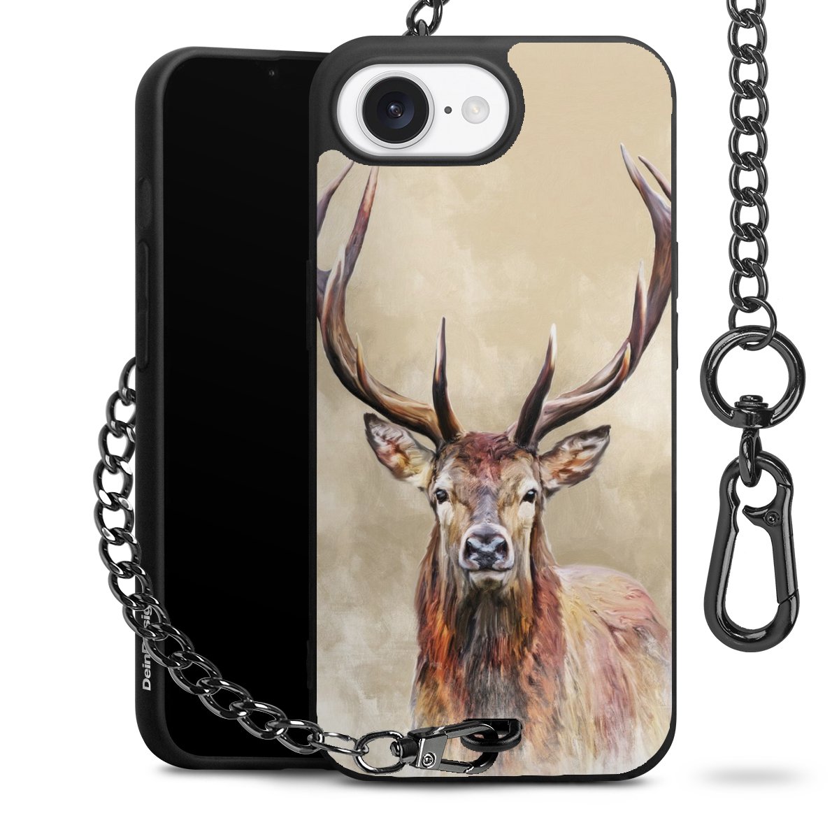 • Mattschwarze Handyhülle mit Metallkette