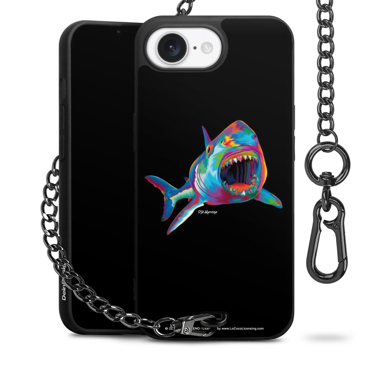 Die mattschwarze Silikon-Handyhülle besteht aus robustem TPU (thermoplastisches Polyurethan). Sie ist flexibel und schützt Dein Smartphone vor Stößen und Kratzern. Die Kette sowie der Karabinerhaken sind aus Metall in Gunmetal-Optik gefertigt. Für dieses Produkt kommen ausschließlich TÜV-geprüfte Materialien zum Einsatz.