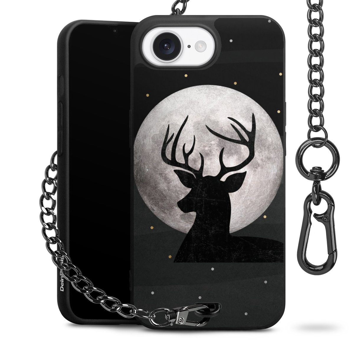 • Mattschwarze Handyhülle mit Metallkette