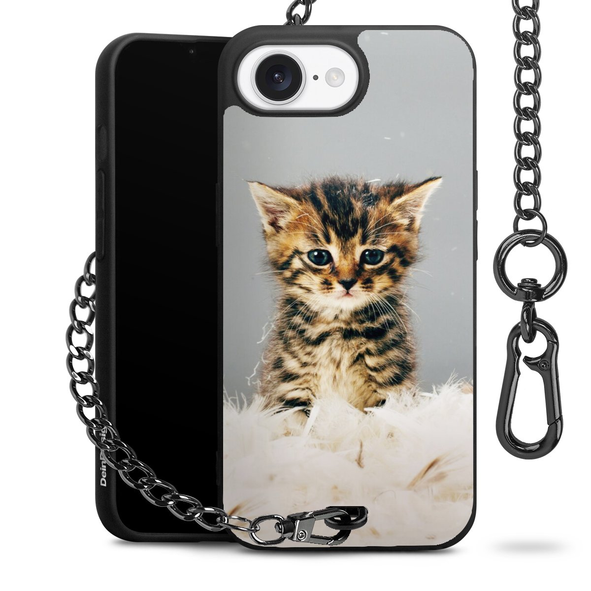 Die mattschwarze Silikon-Handyhülle besteht aus robustem TPU (thermoplastisches Polyurethan). Sie ist flexibel und schützt Dein Smartphone vor Stößen und Kratzern. Die Kette sowie der Karabinerhaken sind aus Metall in Gunmetal-Optik gefertigt. Für dieses Produkt kommen ausschließlich TÜV-geprüfte Materialien zum Einsatz.