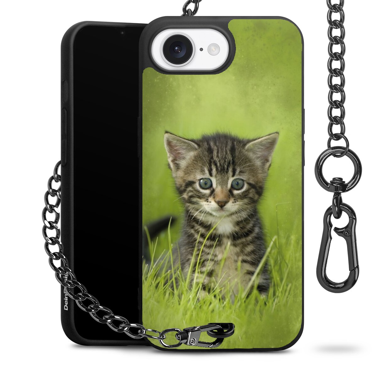 - Mattschwarze Handyhülle mit Metallkette