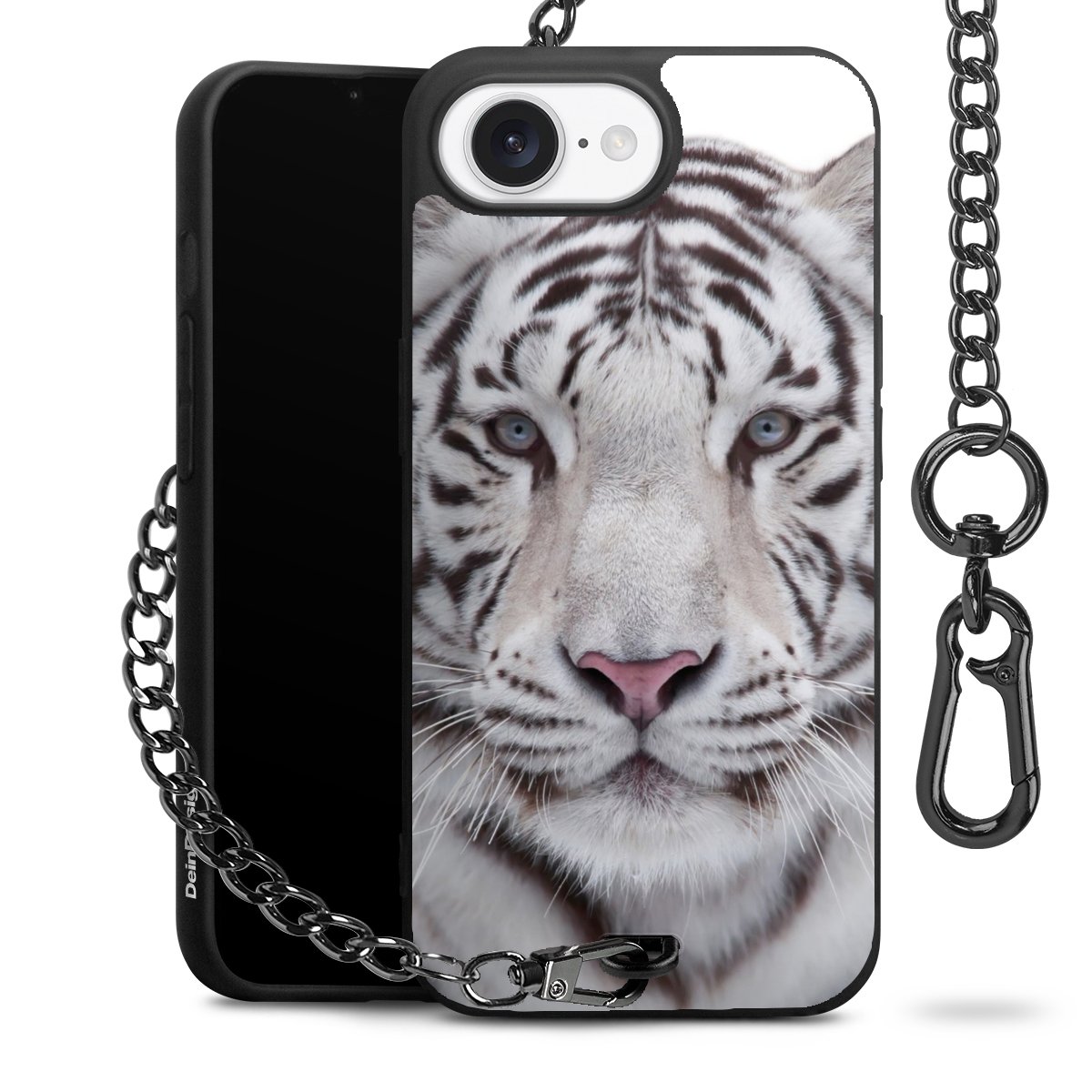 Die mattschwarze Silikon-Handyhülle besteht aus robustem TPU (thermoplastisches Polyurethan). Sie ist flexibel und schützt Dein Smartphone vor Stößen und Kratzern. Die Kette sowie der Karabinerhaken sind aus Metall in Gunmetal-Optik gefertigt. Für dieses Produkt kommen ausschließlich TÜV-geprüfte Materialien zum Einsatz.