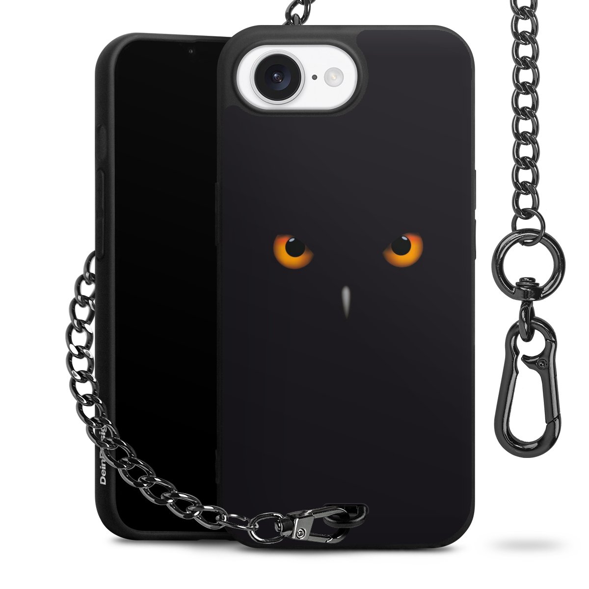 - Mattschwarze Handyhülle mit Metallkette