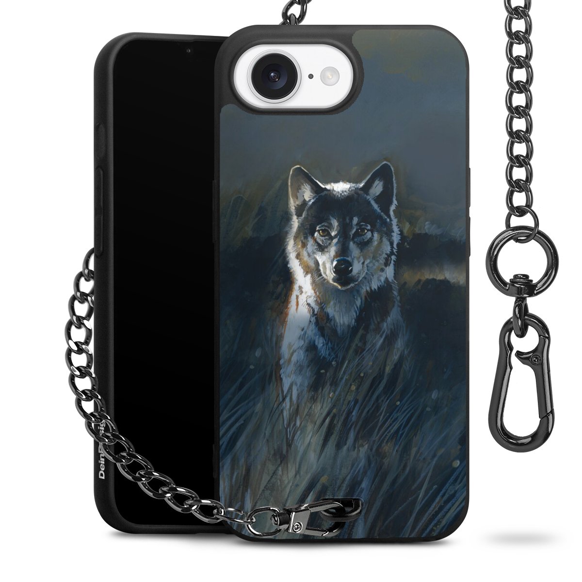 • Mattschwarze Handyhülle mit Metallkette