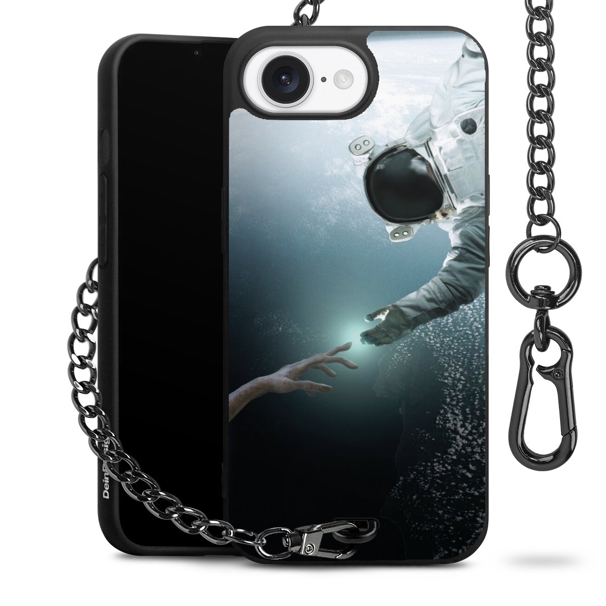 - Mattschwarze Handyhülle mit Metallkette