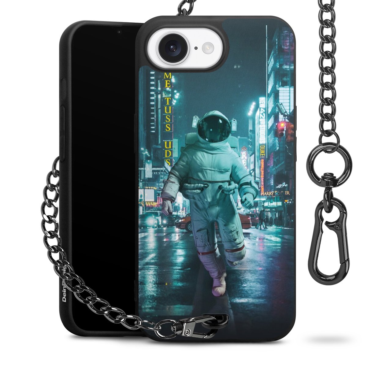 • Mattschwarze Handyhülle mit Metallkette