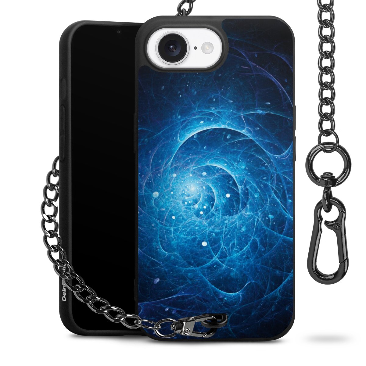 - Mattschwarze Handyhülle mit Metallkette