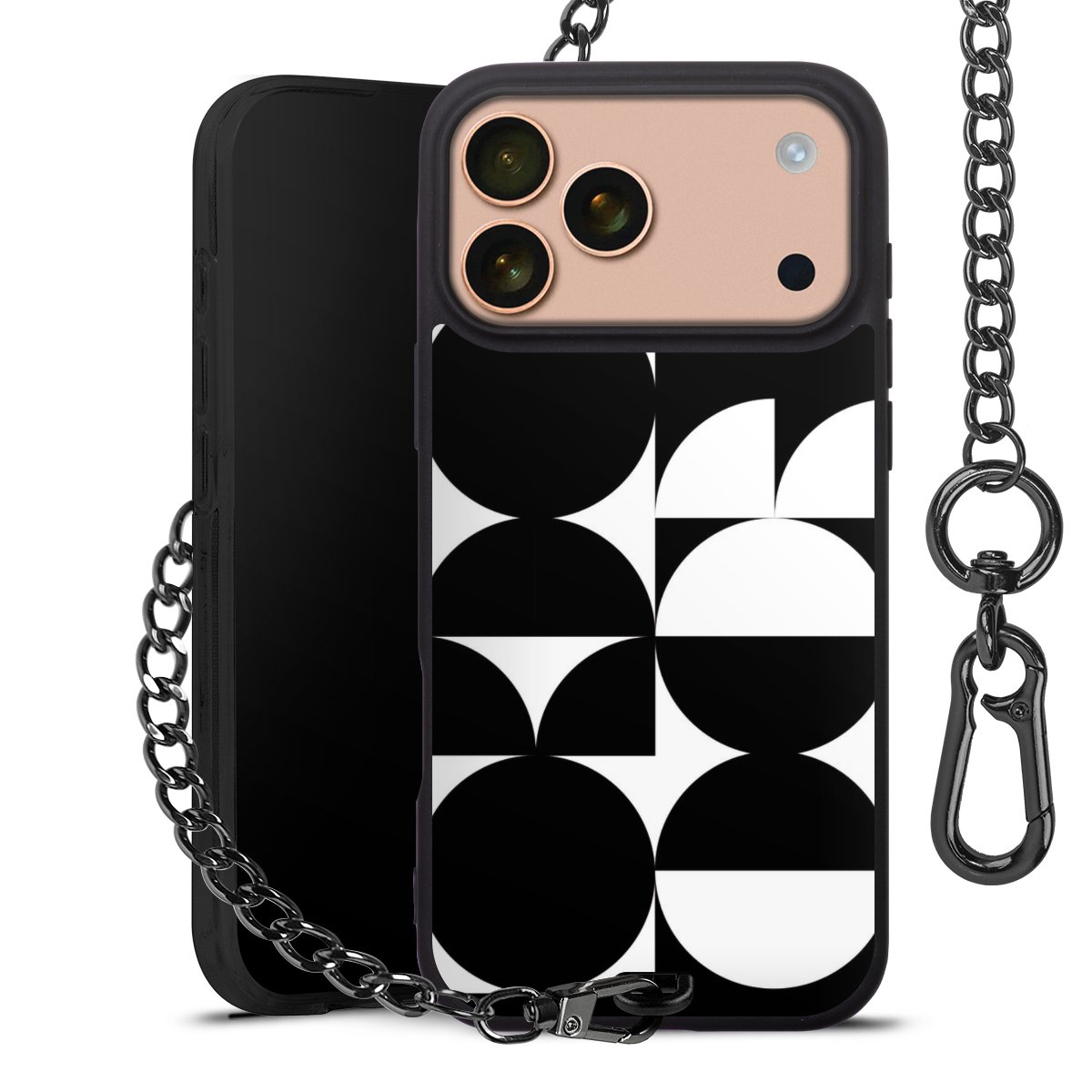 - Mattschwarze Handyhülle mit Metallkette