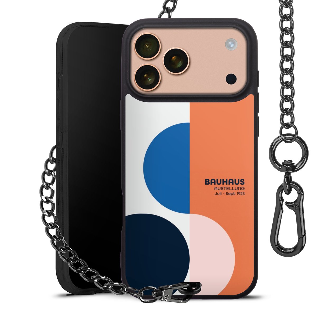 • Mattschwarze Handyhülle mit Metallkette
