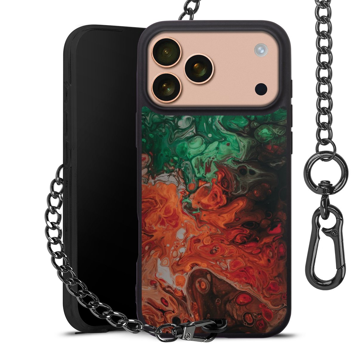 - Mattschwarze Handyhülle mit Metallkette
