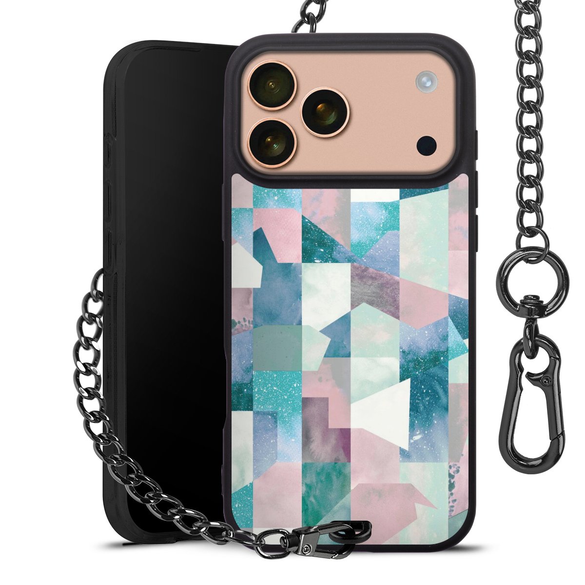 • Mattschwarze Handyhülle mit Metallkette