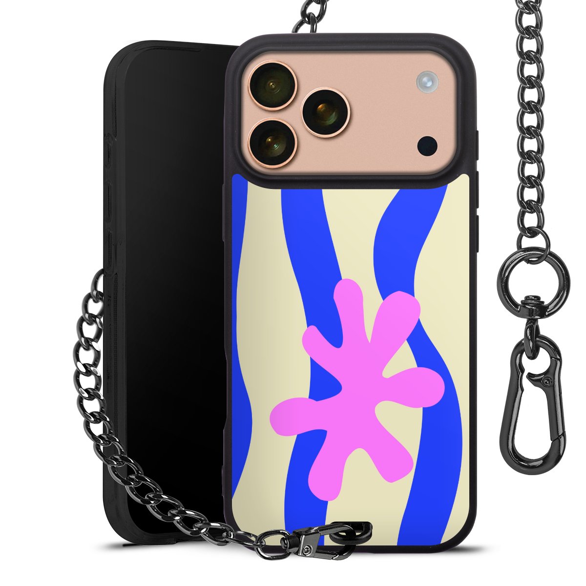 - Mattschwarze Handyhülle mit Metallkette