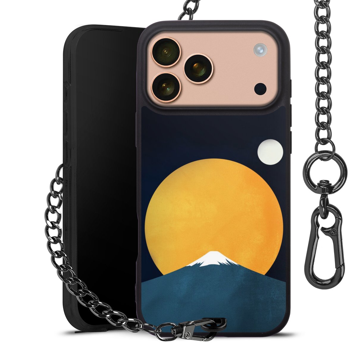 • Mattschwarze Handyhülle mit Metallkette