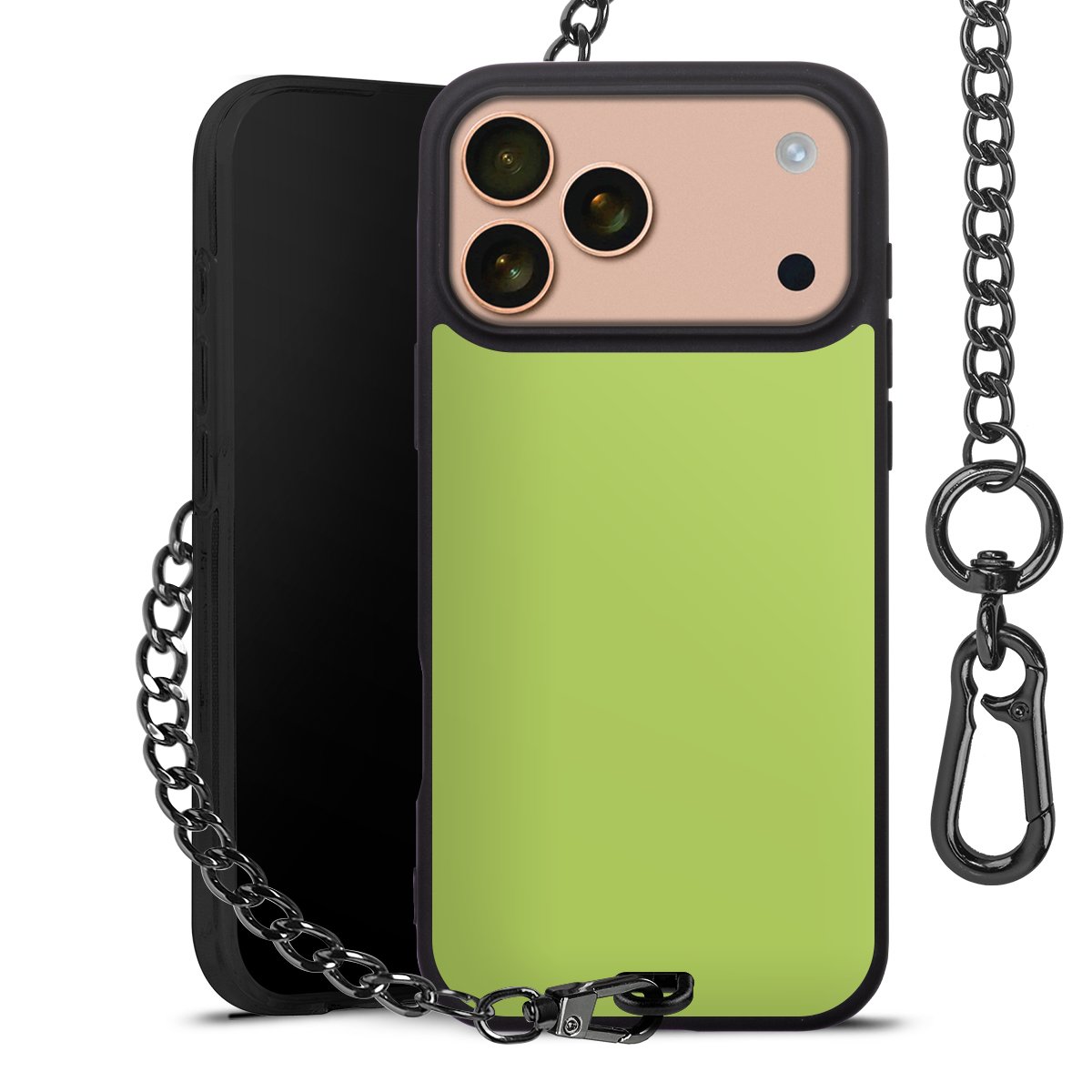 - Mattschwarze Handyhülle mit Metallkette