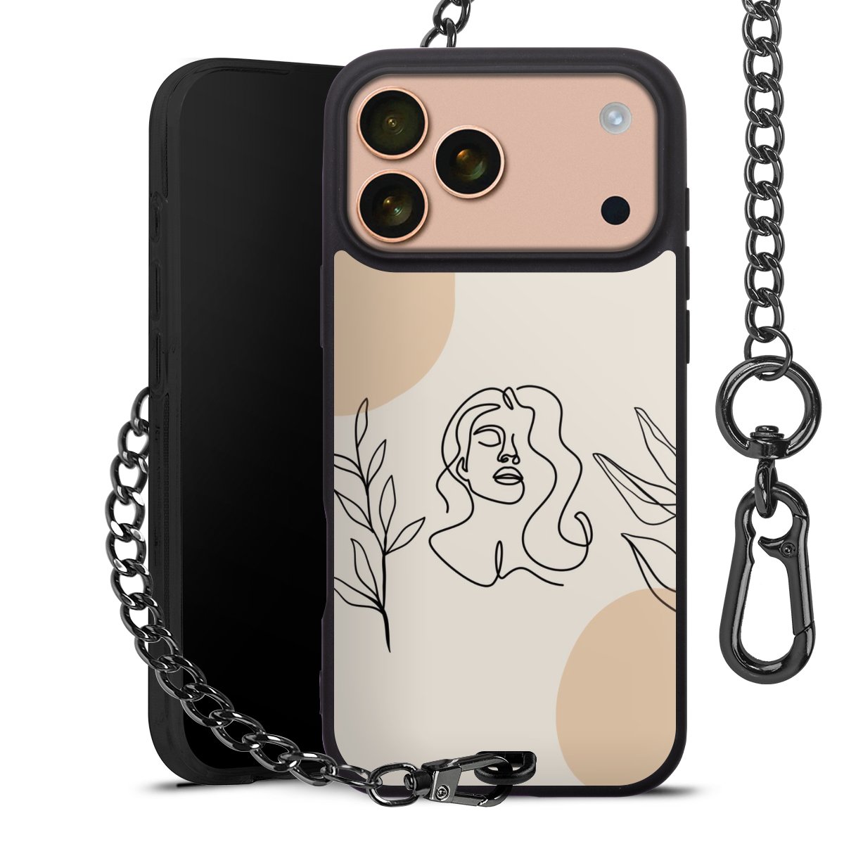 - Mattschwarze Handyhülle mit Metallkette