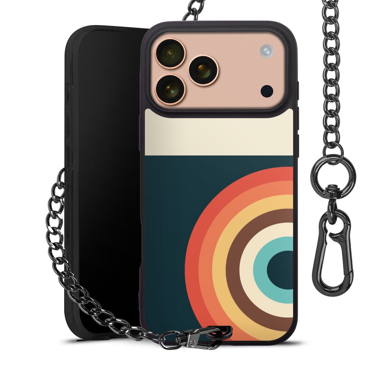 - Mattschwarze Handyhülle mit Metallkette