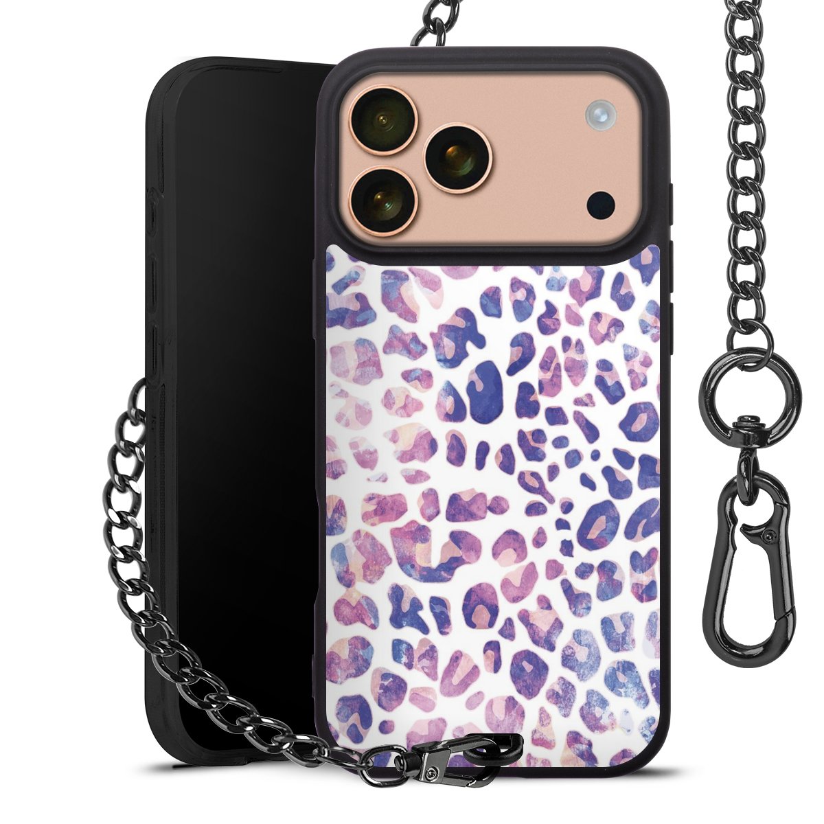 • Mattschwarze Handyhülle mit Metallkette
