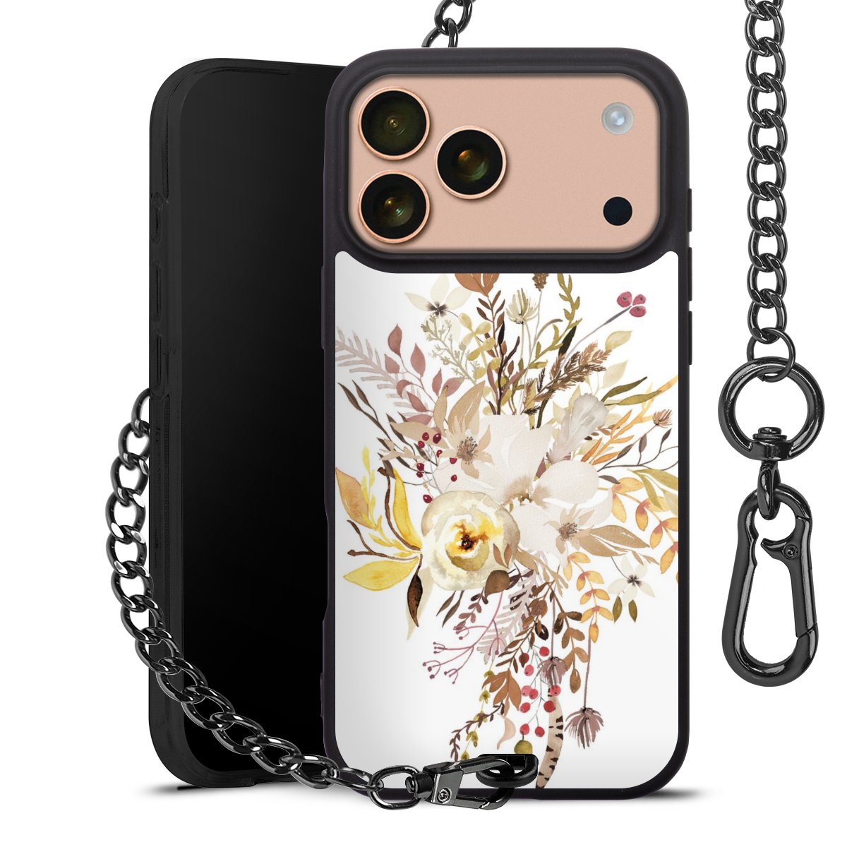 • Mattschwarze Handyhülle mit Metallkette