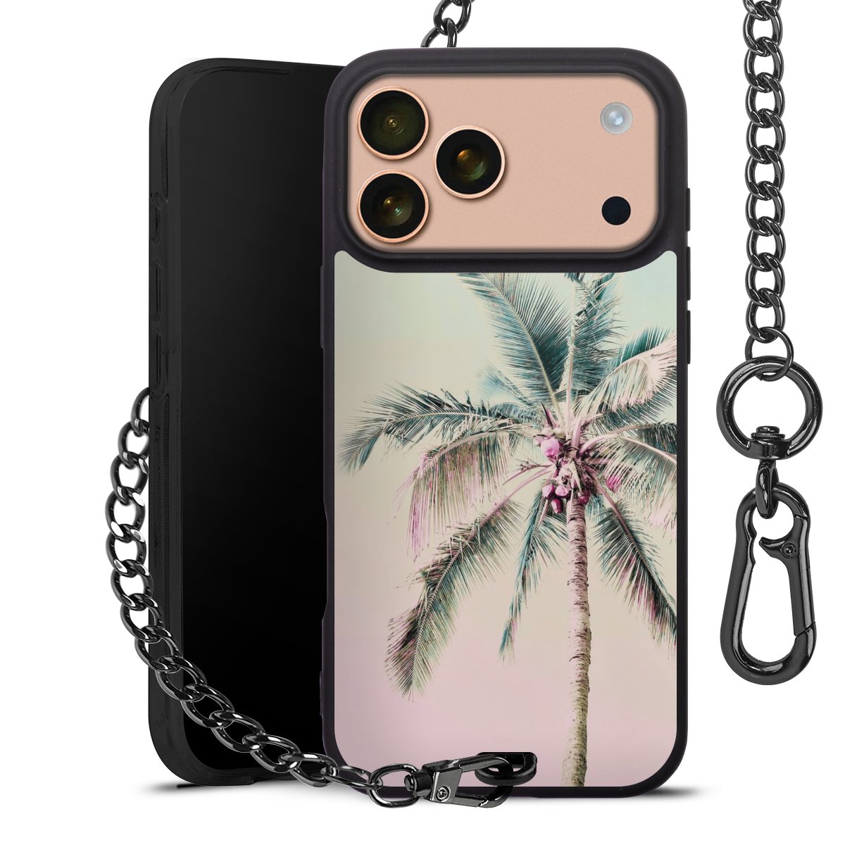 • Mattschwarze Handyhülle mit Metallkette