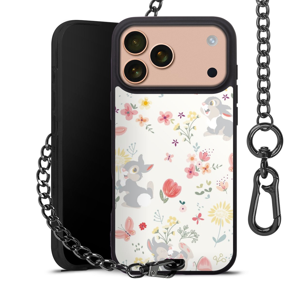• Mattschwarze Handyhülle mit Metallkette