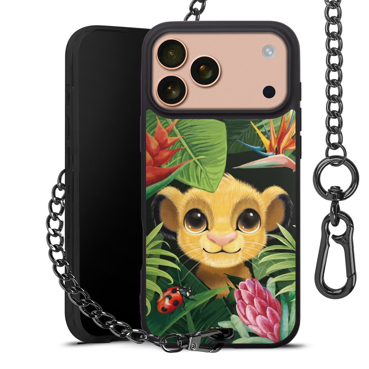 Die Handyhülle verfügt über eine mittig am unteren Rand platzierte Öse, an der die Metallkette stabil befestigt ist. Bestelle die Hülle einfach für Dein Smartphone-Modell, dann passt sie wie angegossen und Du brauchst sie bloß einmal anzudrücken. Handy in die Tasche, Karabiner an den Hosenbund – schon kann die Party starten.