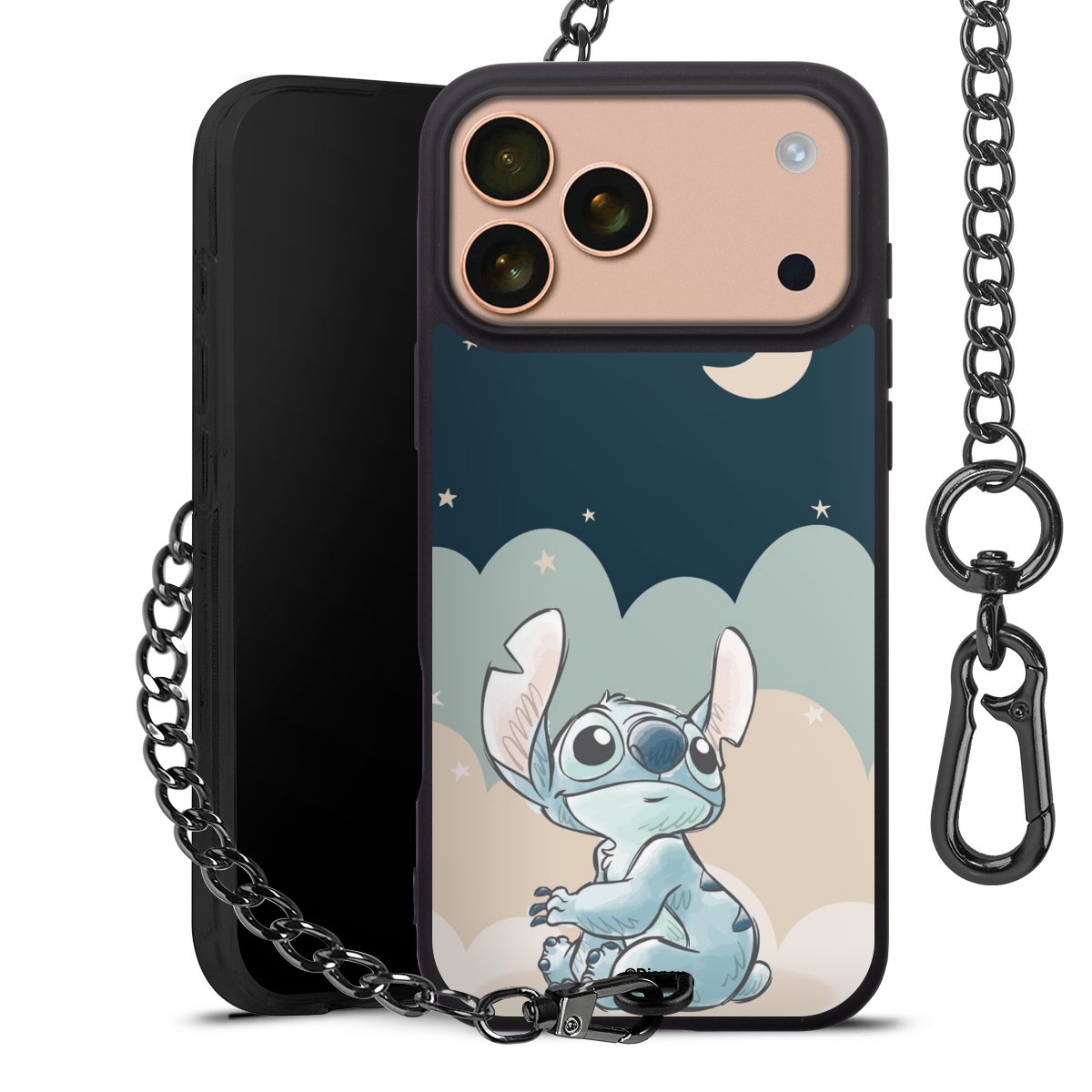 Die Handyhülle verfügt über eine mittig am unteren Rand platzierte Öse, an der die Metallkette stabil befestigt ist. Bestelle die Hülle einfach für Dein Smartphone-Modell, dann passt sie wie angegossen und Du brauchst sie bloß einmal anzudrücken. Handy in die Tasche, Karabiner an den Hosenbund – schon kann die Party starten.
