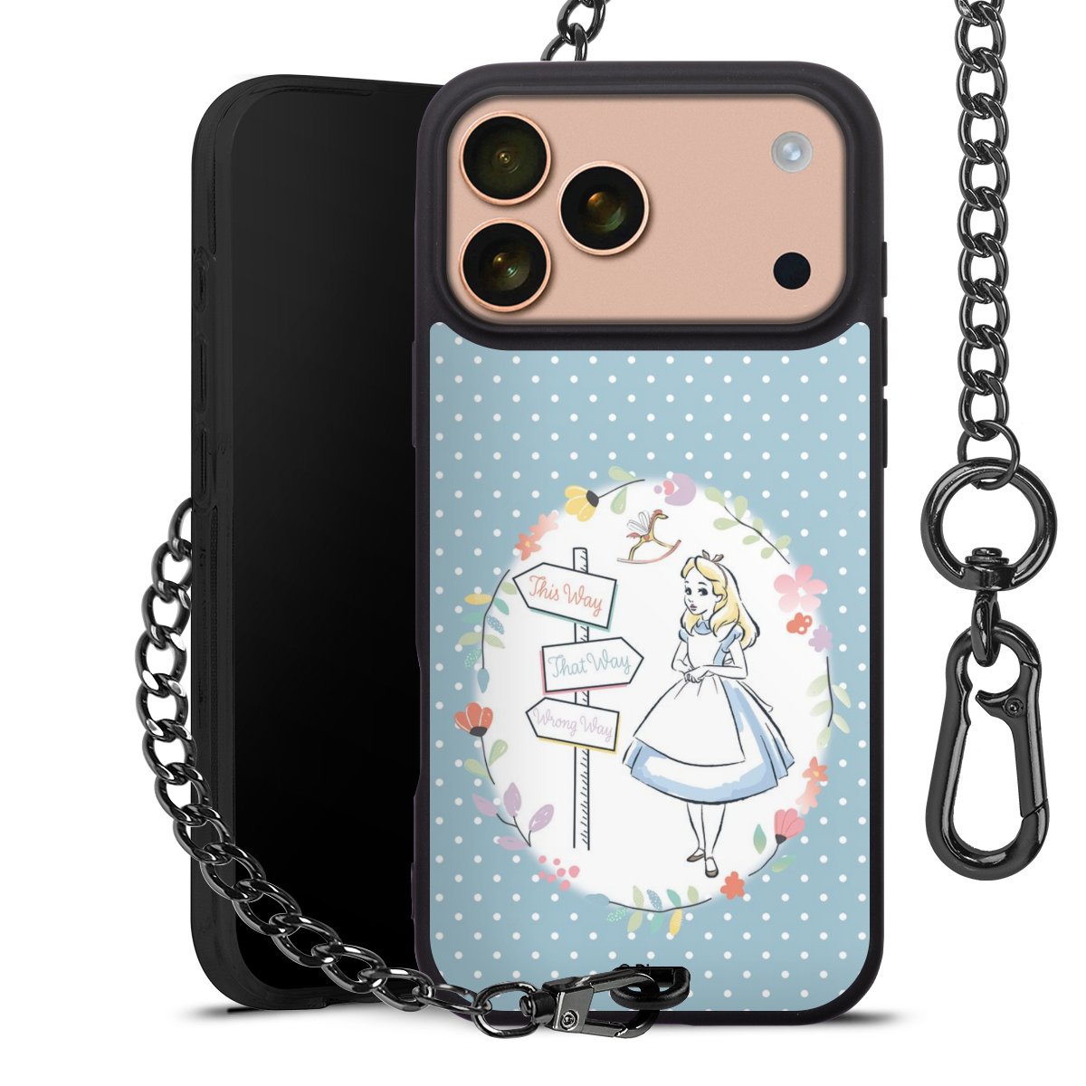 Die Handyhülle verfügt über eine mittig am unteren Rand platzierte Öse, an der die Metallkette stabil befestigt ist. Bestelle die Hülle einfach für Dein Smartphone-Modell, dann passt sie wie angegossen und Du brauchst sie bloß einmal anzudrücken. Handy in die Tasche, Karabiner an den Hosenbund – schon kann die Party starten.