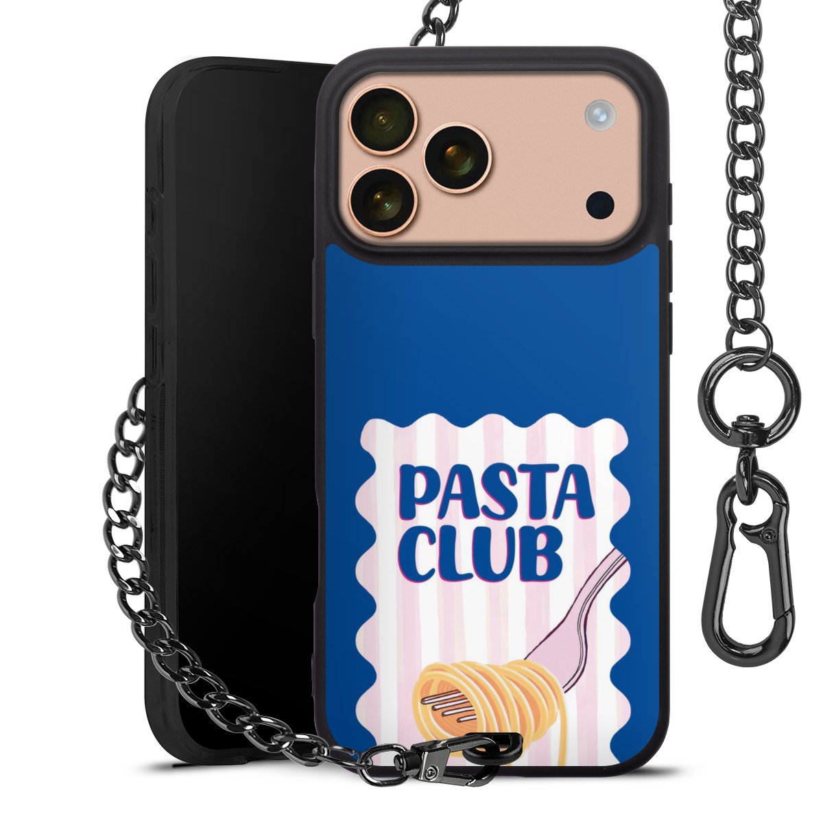 • Mattschwarze Handyhülle mit Metallkette