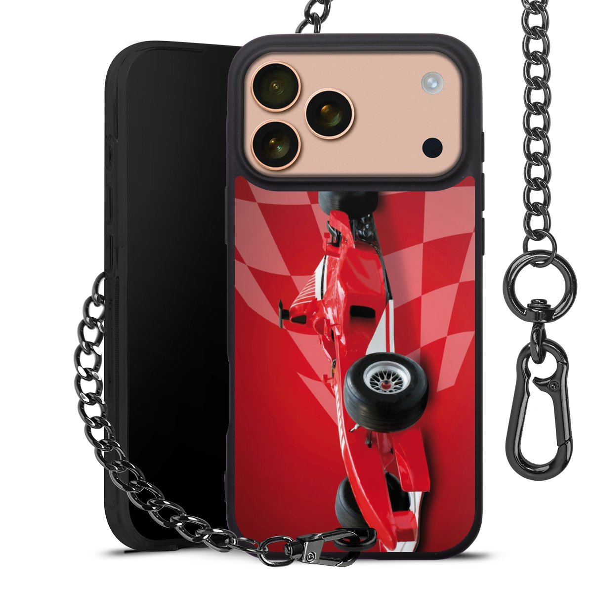 • Mattschwarze Handyhülle mit Metallkette