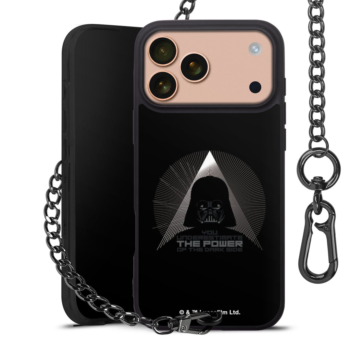 • Mattschwarze Handyhülle mit Metallkette