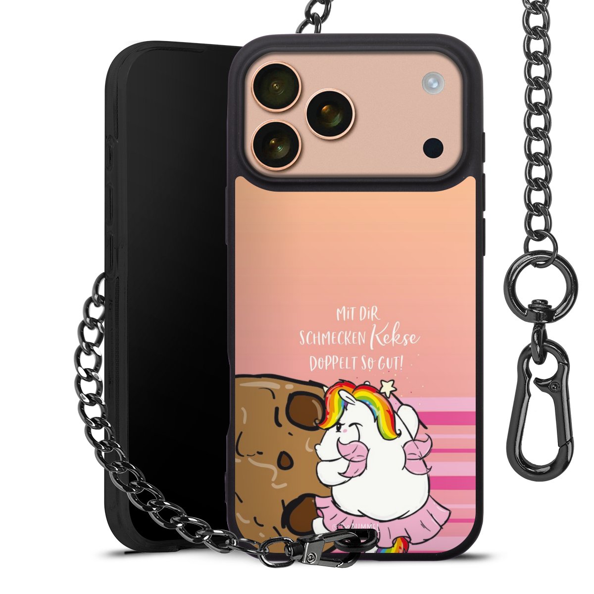 Die mattschwarze Silikon-Handyhülle besteht aus robustem TPU (thermoplastisches Polyurethan). Sie ist flexibel und schützt Dein Smartphone vor Stößen und Kratzern. Die Kette sowie der Karabinerhaken sind aus Metall in Gunmetal-Optik gefertigt. Für dieses Produkt kommen ausschließlich TÜV-geprüfte Materialien zum Einsatz.