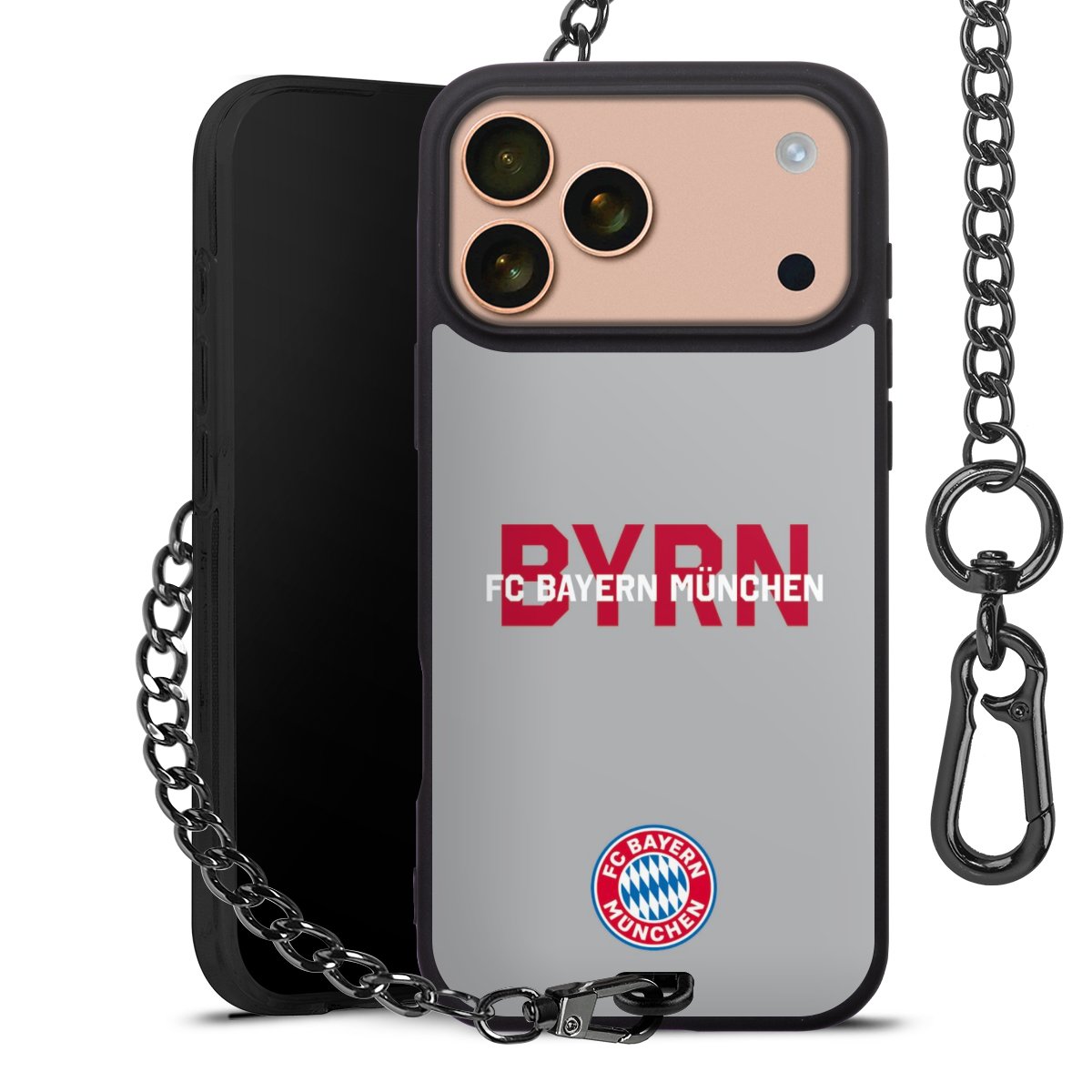 • Mattschwarze Handyhülle mit Metallkette