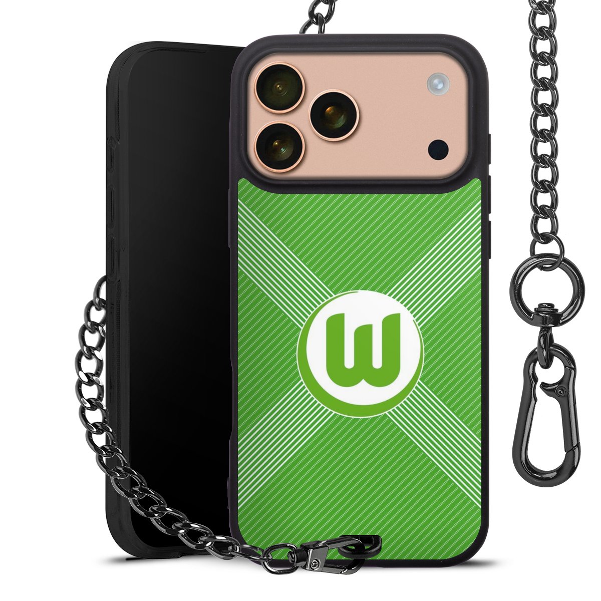 • Mattschwarze Handyhülle mit Metallkette