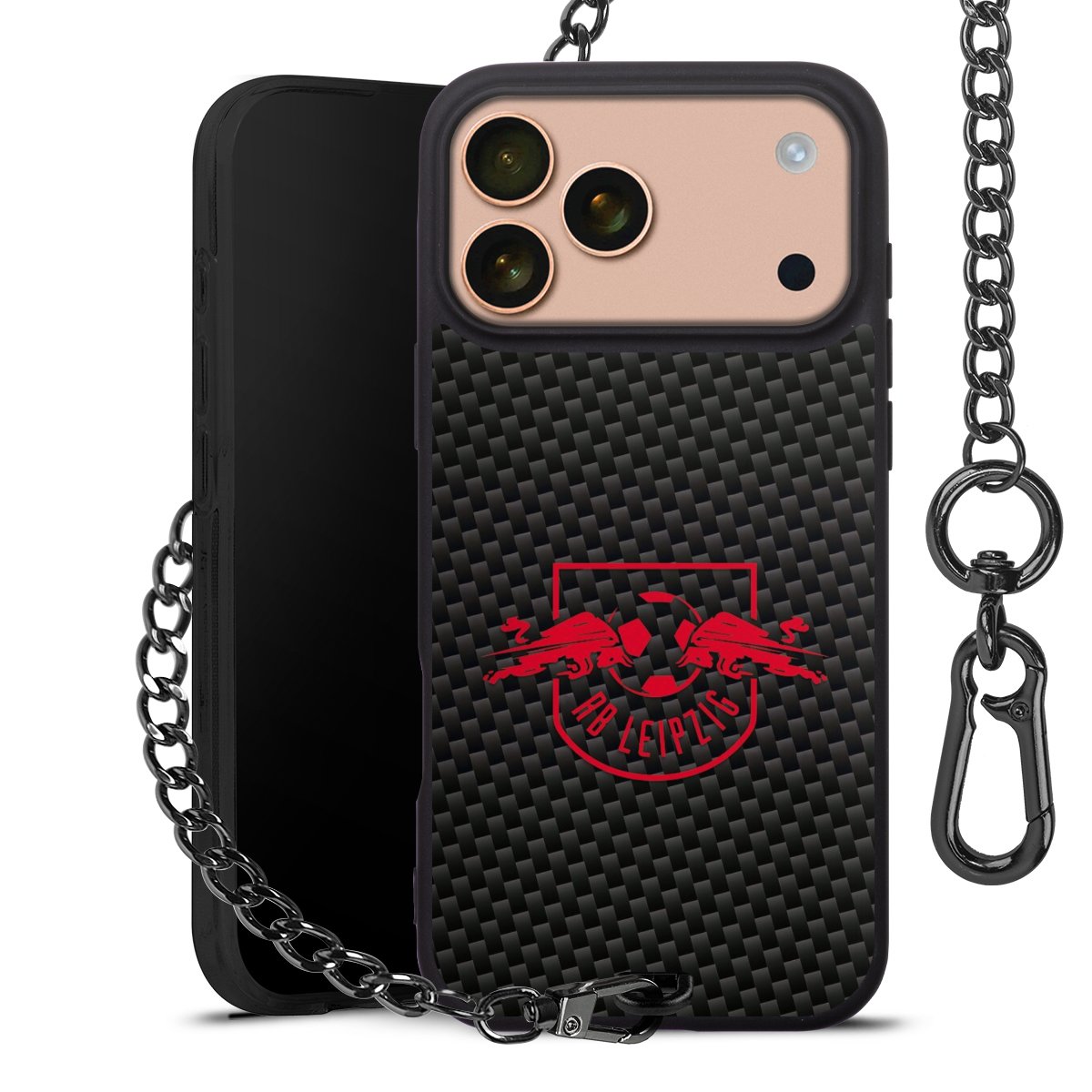 • Mattschwarze Handyhülle mit Metallkette
