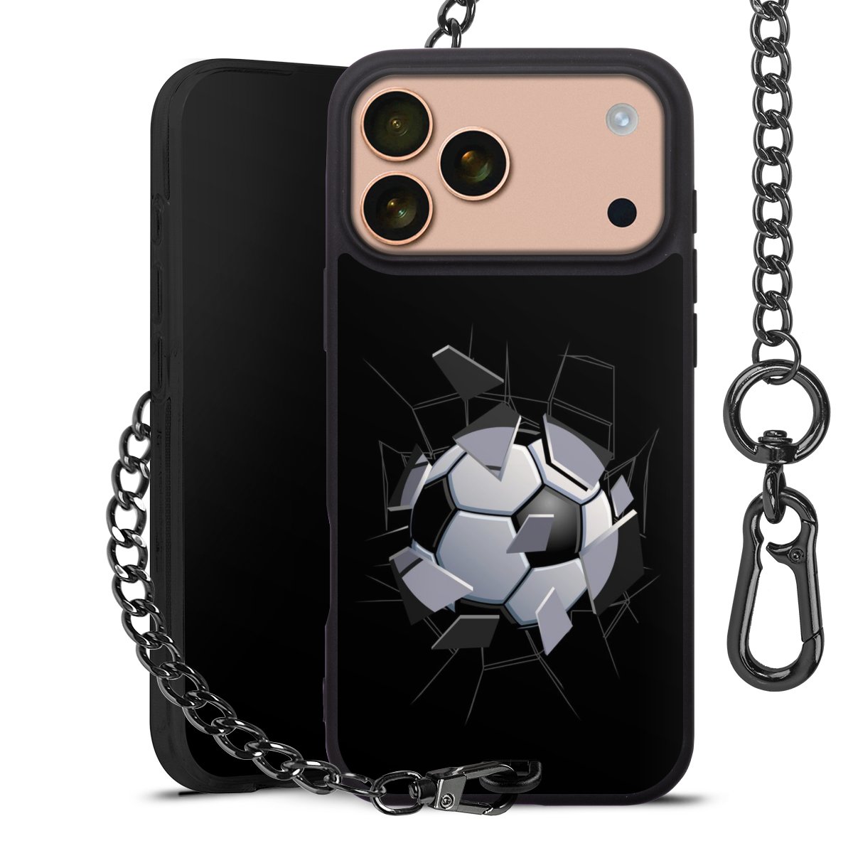 - Mattschwarze Handyhülle mit Metallkette