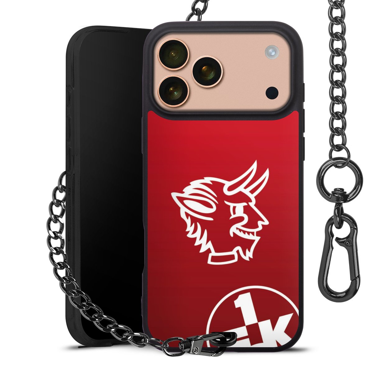 Die Handyhülle verfügt über eine mittig am unteren Rand platzierte Öse, an der die Metallkette stabil befestigt ist. Bestelle die Hülle einfach für Dein Smartphone-Modell, dann passt sie wie angegossen und Du brauchst sie bloß einmal anzudrücken. Handy in die Tasche, Karabiner an den Hosenbund – schon kann die Party starten.