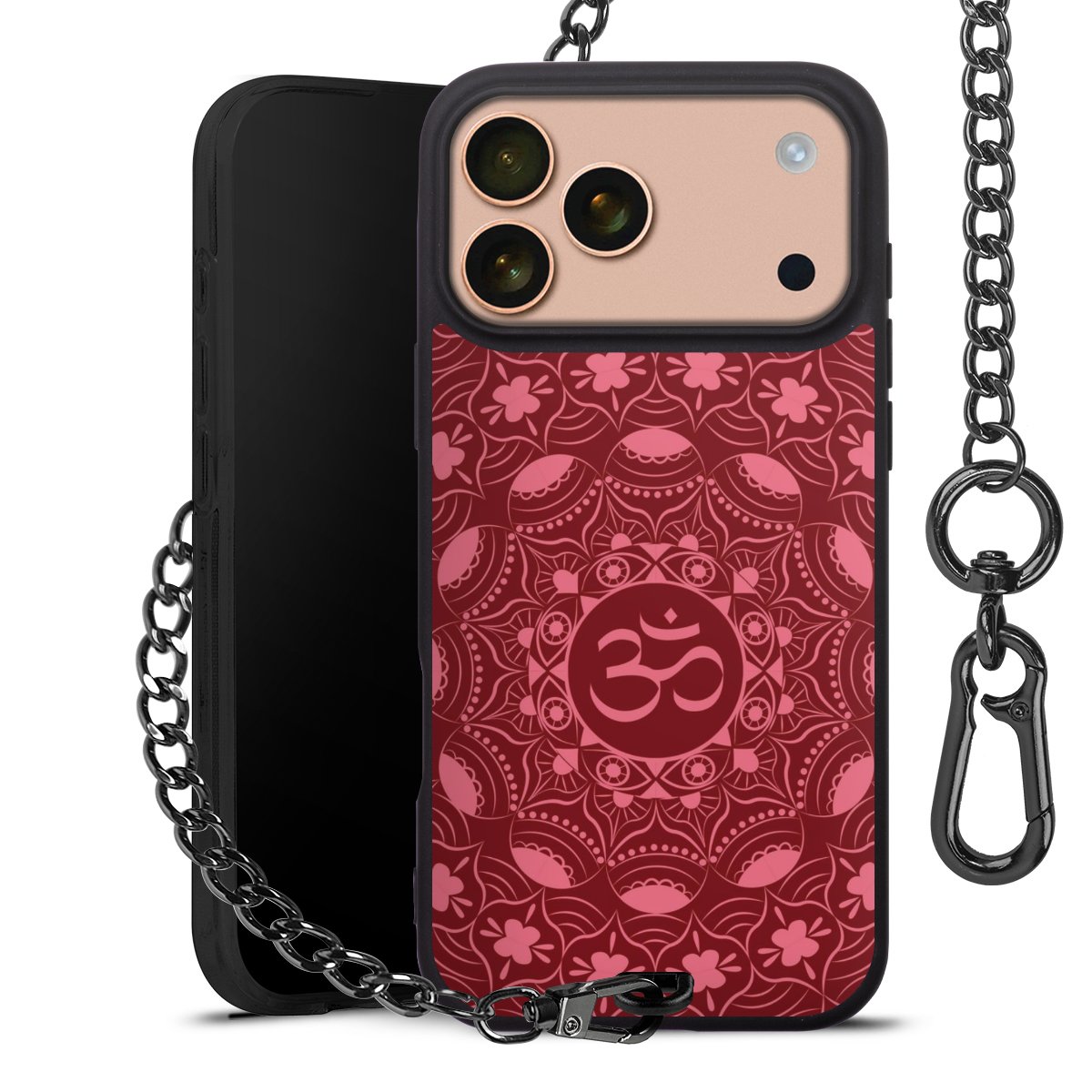 - Mattschwarze Handyhülle mit Metallkette