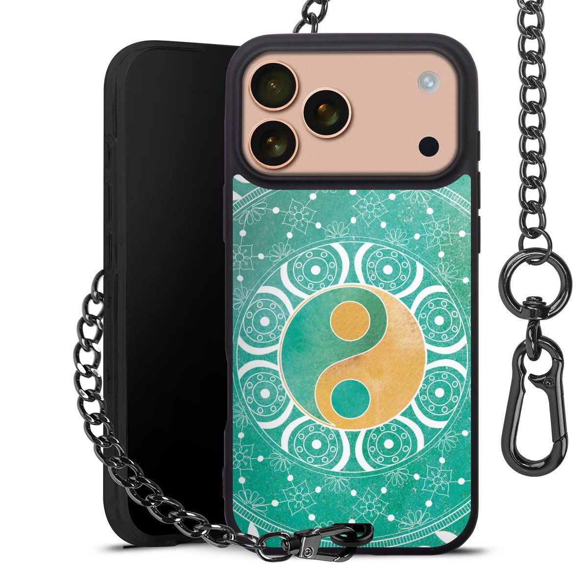 • Mattschwarze Handyhülle mit Metallkette