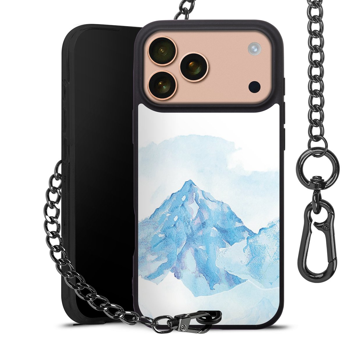 - Mattschwarze Handyhülle mit Metallkette