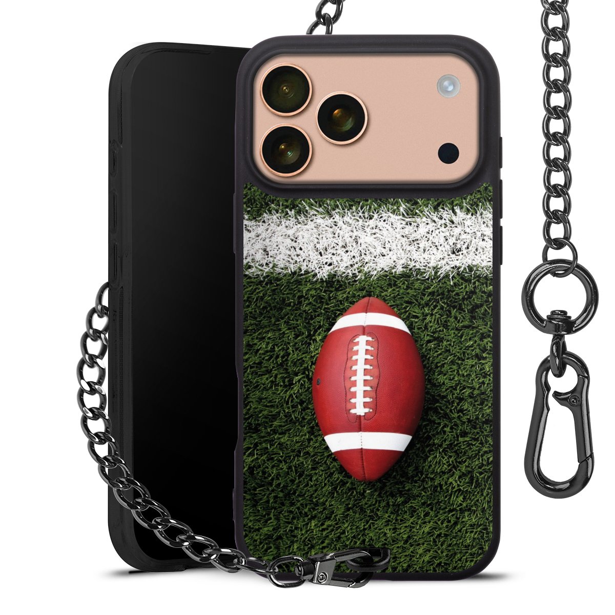 - Mattschwarze Handyhülle mit Metallkette