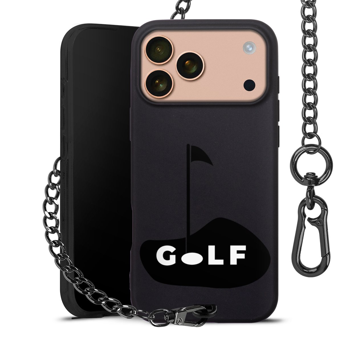 • Mattschwarze Handyhülle mit Metallkette