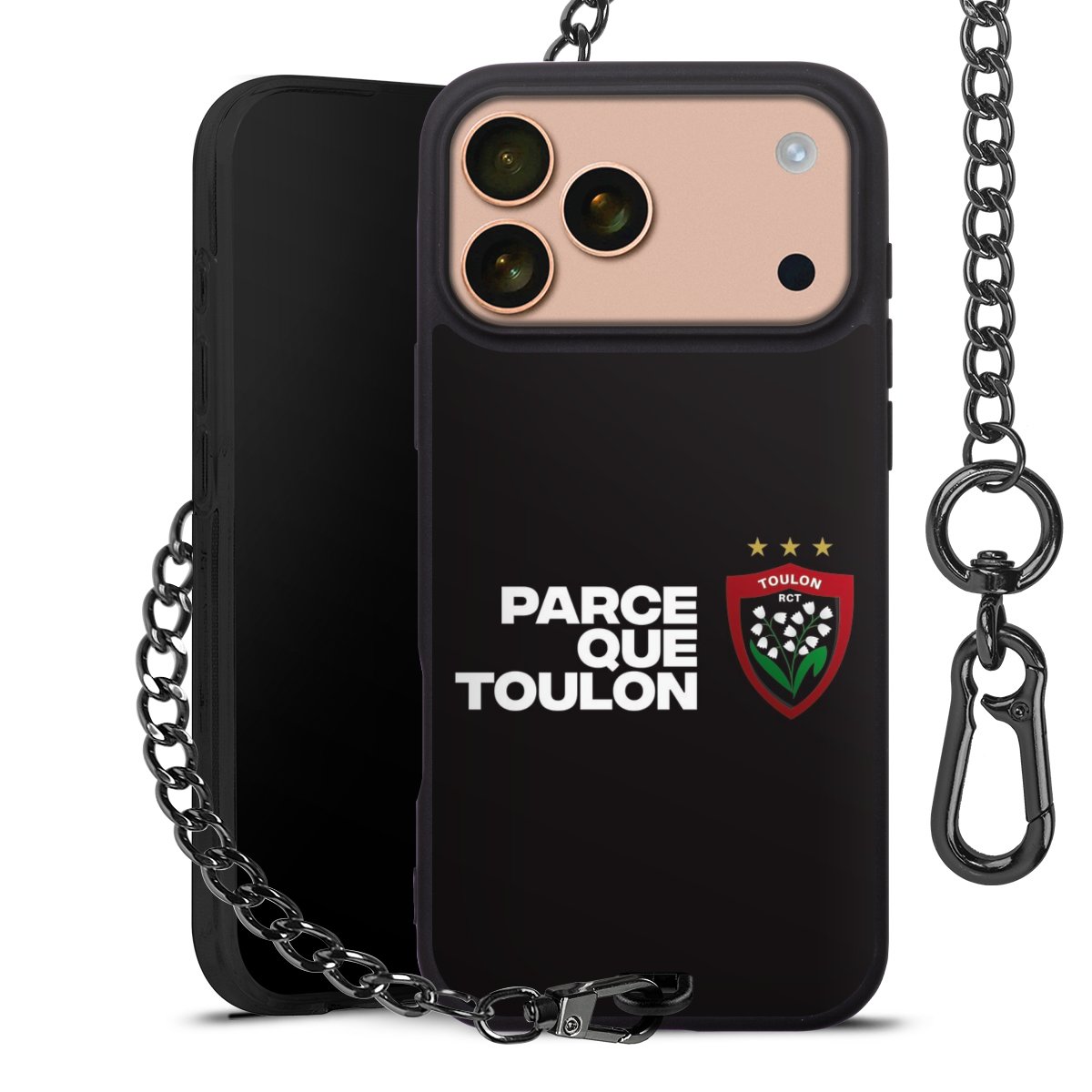 - Mattschwarze Handyhülle mit Metallkette