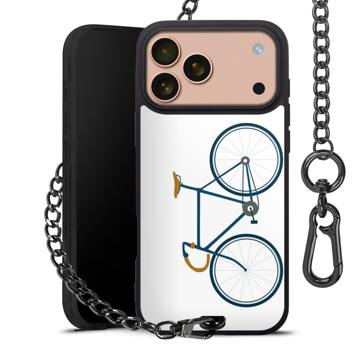 - Mattschwarze Handyhülle mit Metallkette