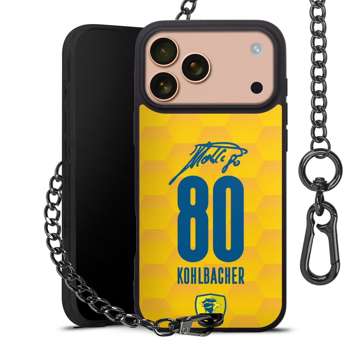 • Mattschwarze Handyhülle mit Metallkette