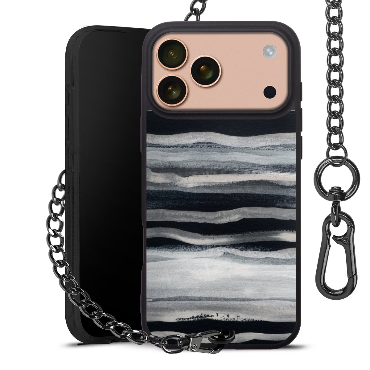 • Mattschwarze Handyhülle mit Metallkette